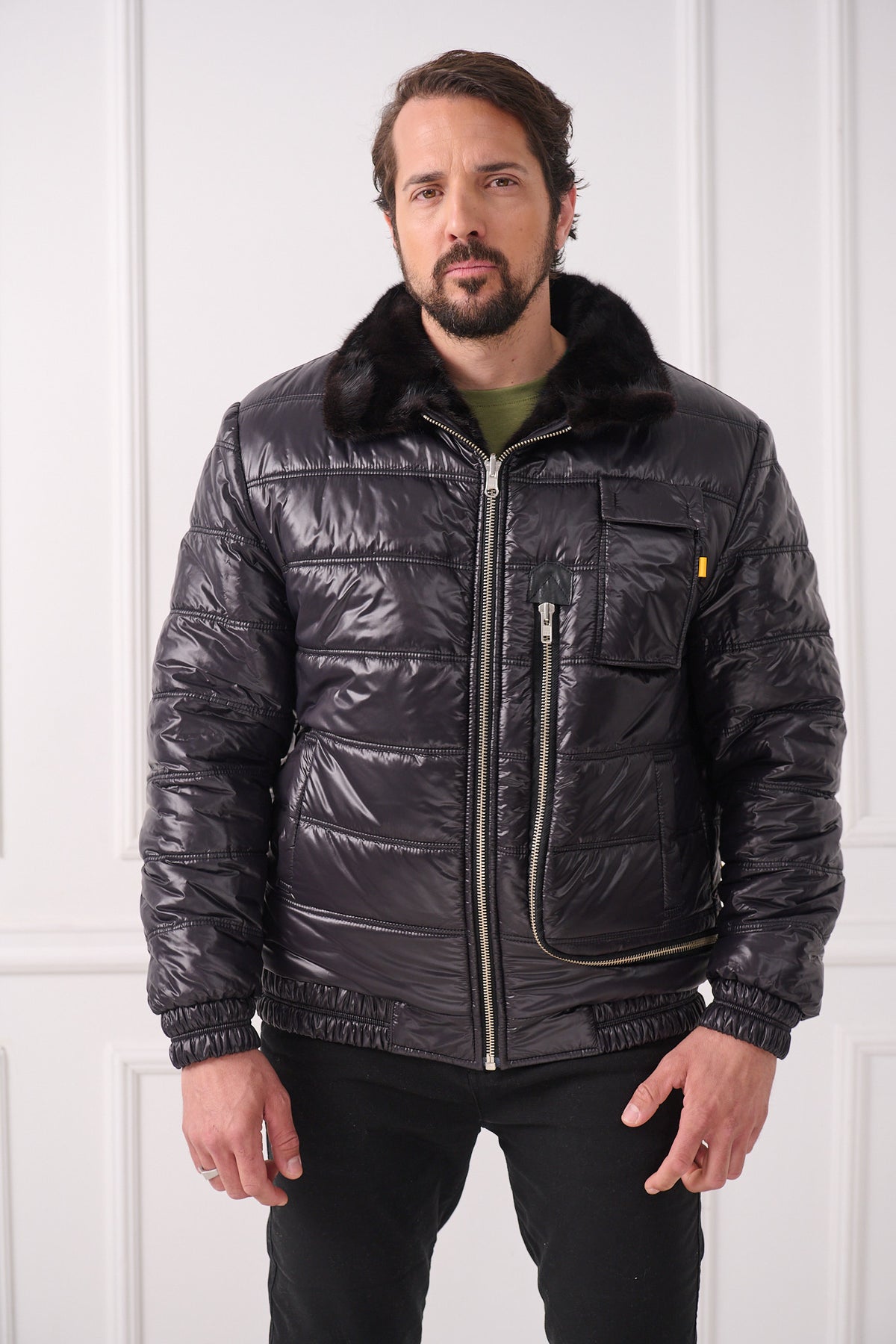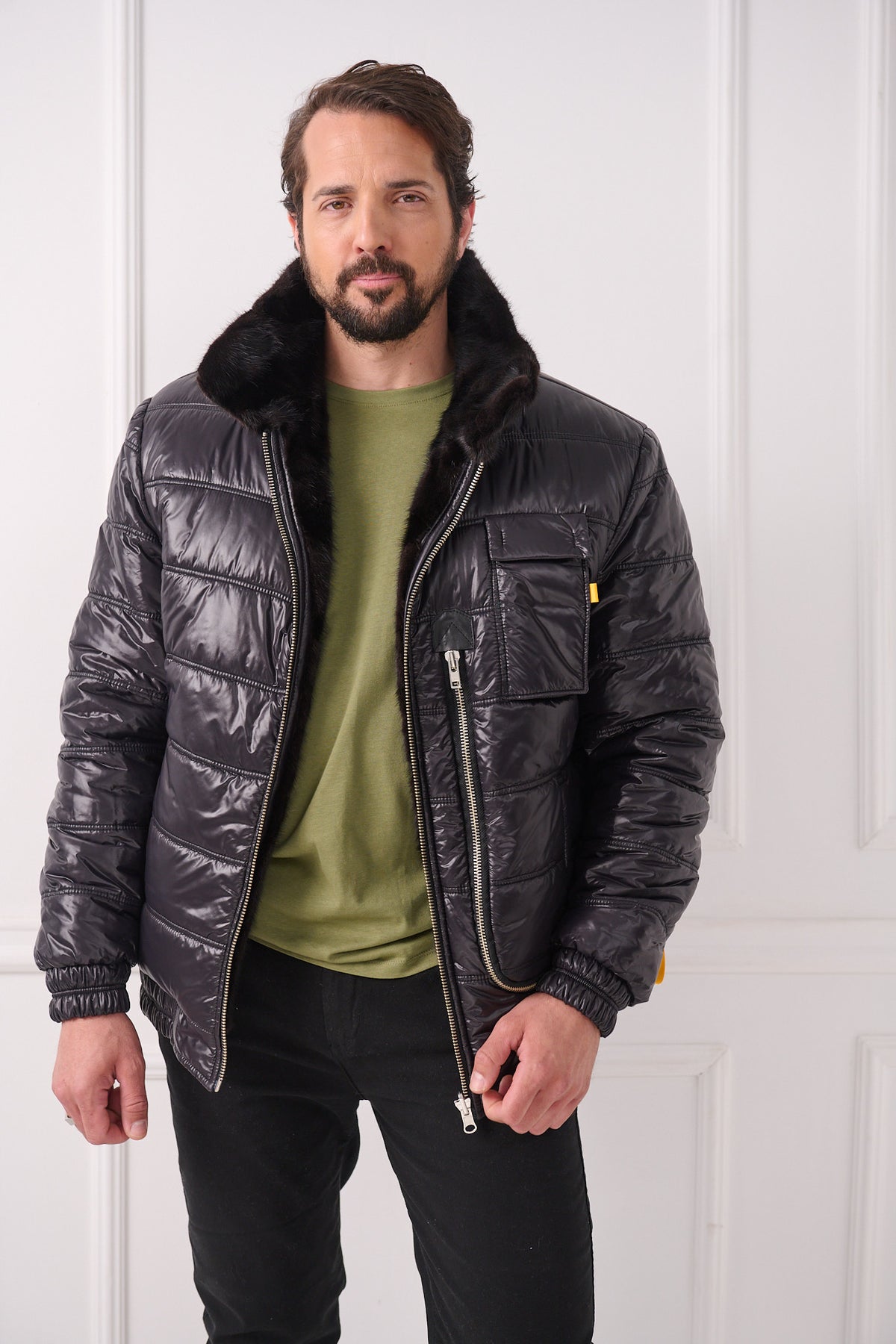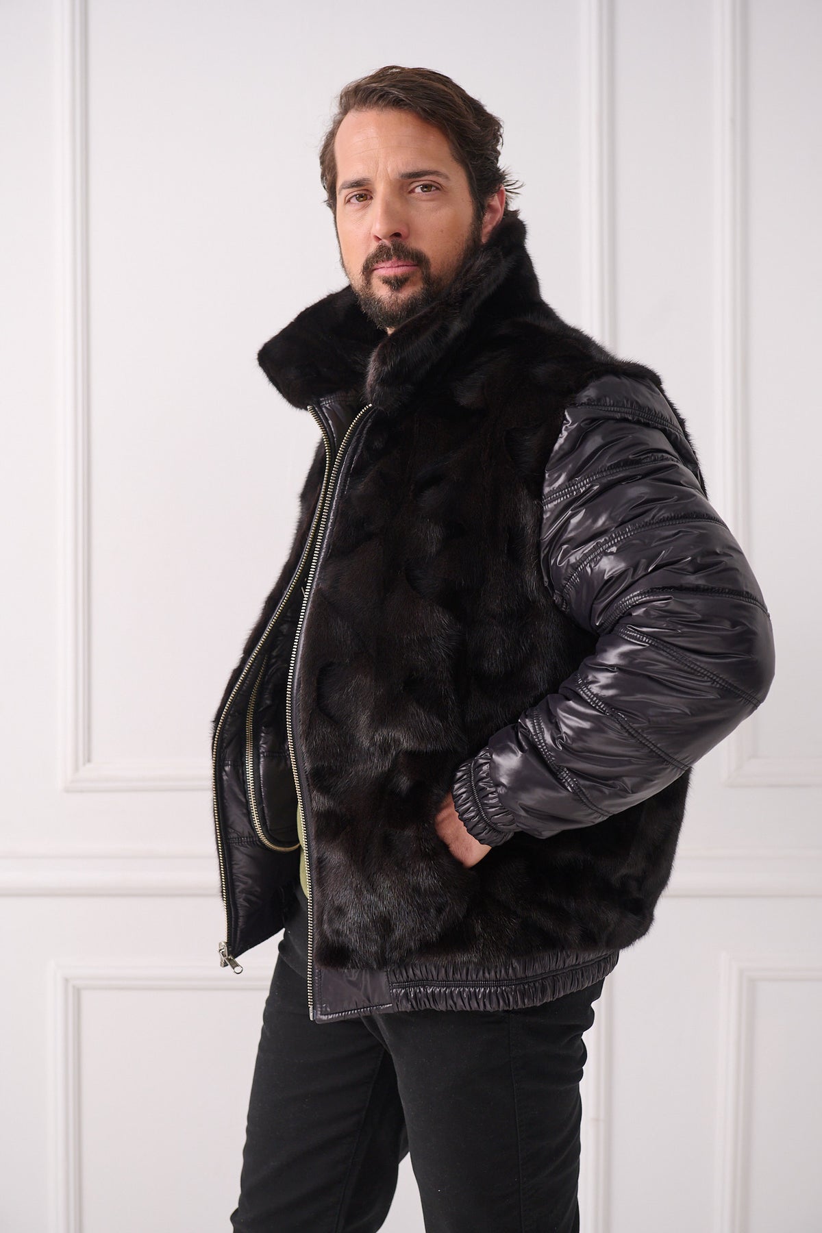 Veste aviateur réversible en vison pour homme
