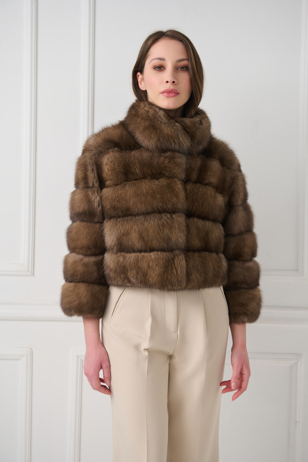 Modern classic sable fur jacket. This cropped jacket features a soft, horizontal construction that highlights the fur’s natural volume and silky texture.