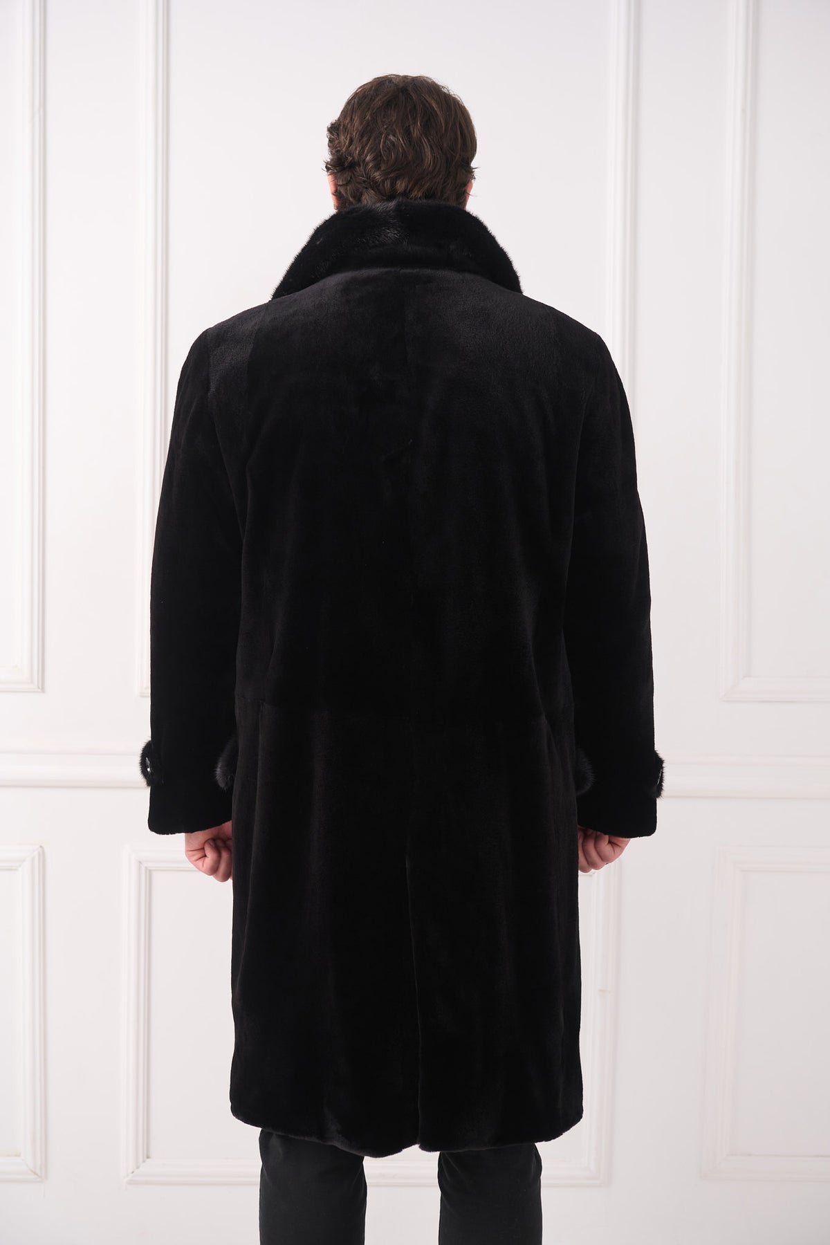 Элегантное мужское длинное пальто из мягкой стриженной норки, выполненное в прямом, чистом крое, длиной чуть ниже колена. Пальто оснащено широким шалевым воротником из длинношерстной норки, который добавляет дополнительное тепло и текстуру. Манжеты отделаны подходящей отделкой из длинношерстной норки и застегиваются на пуговицы для изысканного вида. Застежка на пуговицы спереди и удобные боковые карманы завершают дизайн, а задний разрез обеспечивает свободу движений.